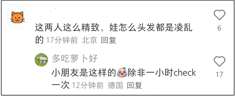 说到宝宝,有网友认为张若昀与唐艺昕打扮得止境细腻,但似乎对孩子不上心。就合影来看,老婆俩行头一个不落下,处处齐是细腻好意思,而犬子的头发对比起来就显得有些杂沓,双马尾扎得止境松垮,看起来像刚睡醒今夜没梳头的花样。不外从蓬蓬裙来看,老婆俩照旧对孩子用心,也注重到伦敦的天气情况,给孩子穿了打底衫。对于宝宝头发乱的问题,有网友暗示小一又友的头发即是这花样,要细腻必须每个小时收拾查验。